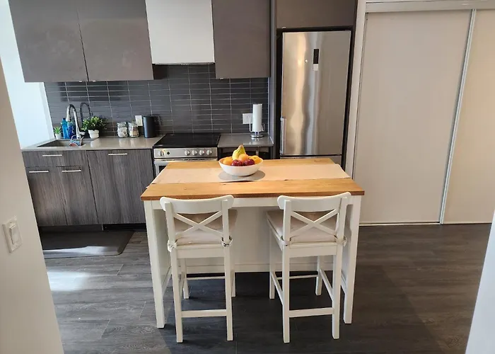Stylish Stay Toronto Oasis - Reg # Str-2309-Hmvrvx Exp Feb 21, 2026, un apartamento de 49 m², está situado a unos 5 minutos a pie de Masjidur Rahmah y a 5 km del aeropuerto Toronto City Centre. Los huéspedes pueden relajarse en la terraza del apartamento, que se encuentra cerca del Conservatorio Allan Gardens.